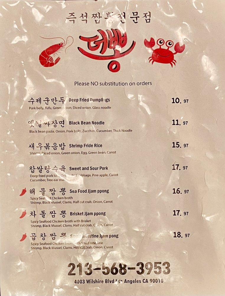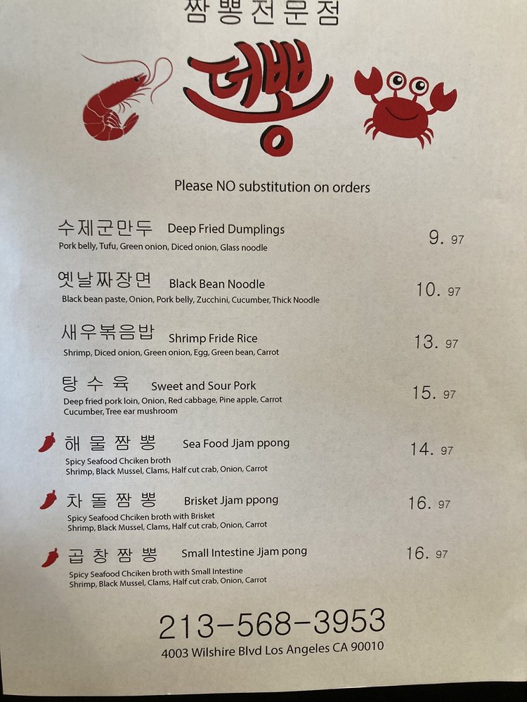 Introducing The Ppong, a Chinese-Korean fusion restaurant located in Los Angeles, CA. Known for its signature dishes, Jjamppong and Jajangmyeon, The Ppong offers a unique and flavorful dining experience. The menu features a variety of noodle dishes, including Black Bean Noodles and Sweet and Sour Pork, all made with top-tier quality ingredients. Customers rave about the generous portions, fresh flavors, and affordable prices. The attentive staff and modern ordering system ensure a seamless dining experience. Be sure to try the Jamppong for a satisfying and spicy seafood noodle soup or the Black Bean Noodles with crispy sweet and sour pork. The Ppong is a must-visit for those craving authentic Korean-Chinese cuisine in a casual and friendly setting. Satisfaction is guaranteed at The Ppong!